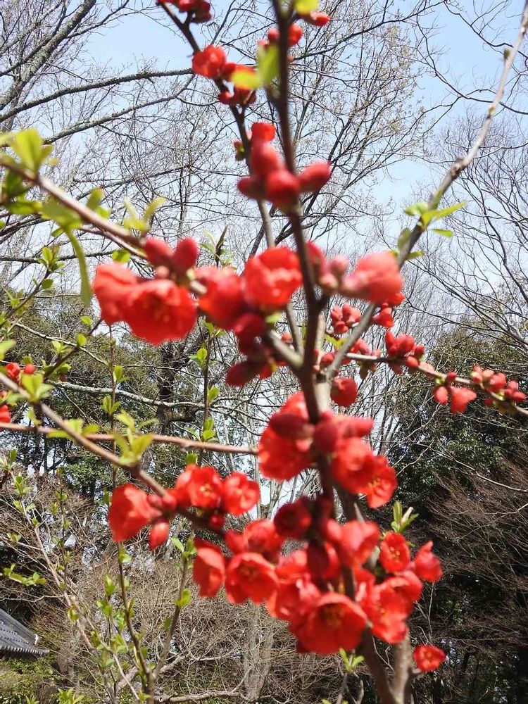 満開の赤い花🏵️木瓜 ボケ🏵️