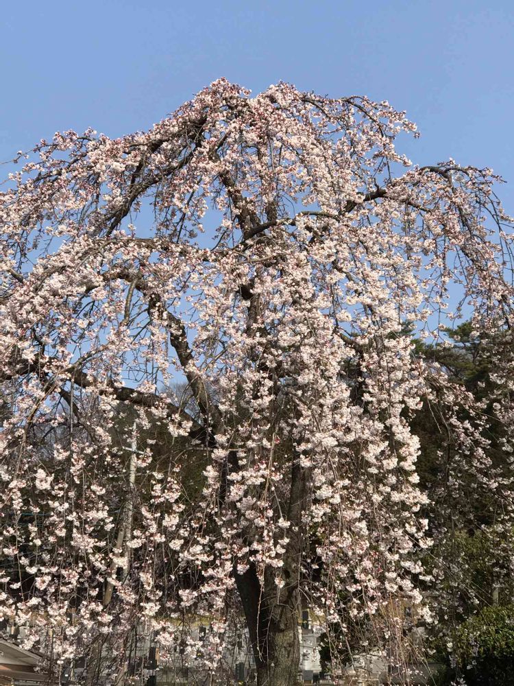 枝垂れ桜が、あっと言う間に、満開を迎えています。桜の🌸の見頃は、直ぐに過ぎますね〜 隣のお寺で。