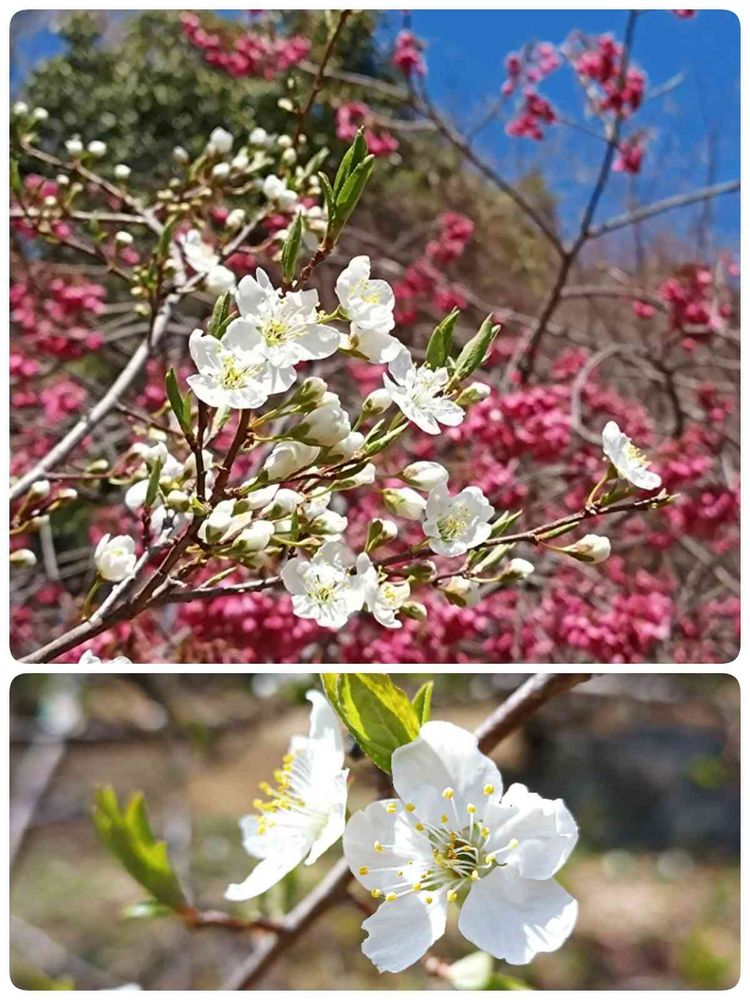 スモモだと思いますが、寒緋桜🌸が長く咲いていたので、ステキなコラボになりました。