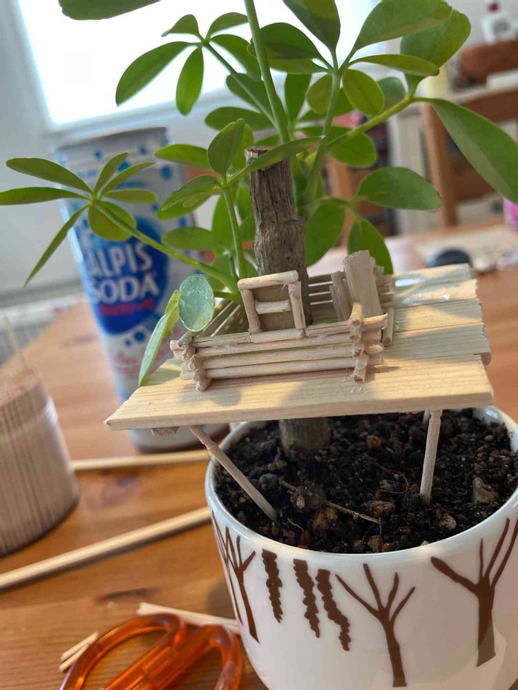 「トムソーヤの冒険」って アニメの影響で、ツリーハウスの虜に。 ハックの家にどんばまり😁 ミニチュアツリーハウス製作してます。 内装凝りすぎて、ややドールハウスに 近いです。
