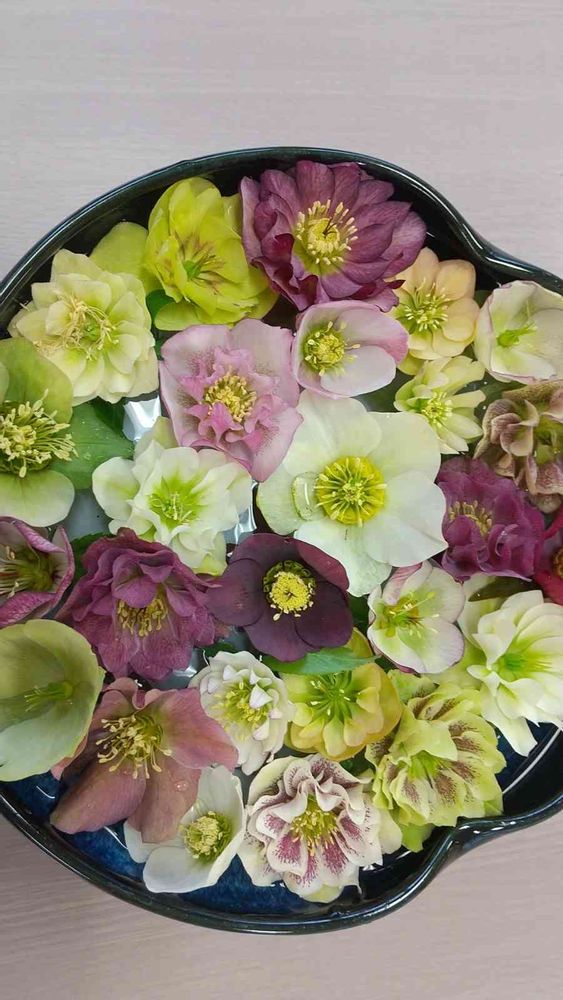 こんばんは😊たくさんのクリスマスローズが集まりました😊綺麗で〜す。