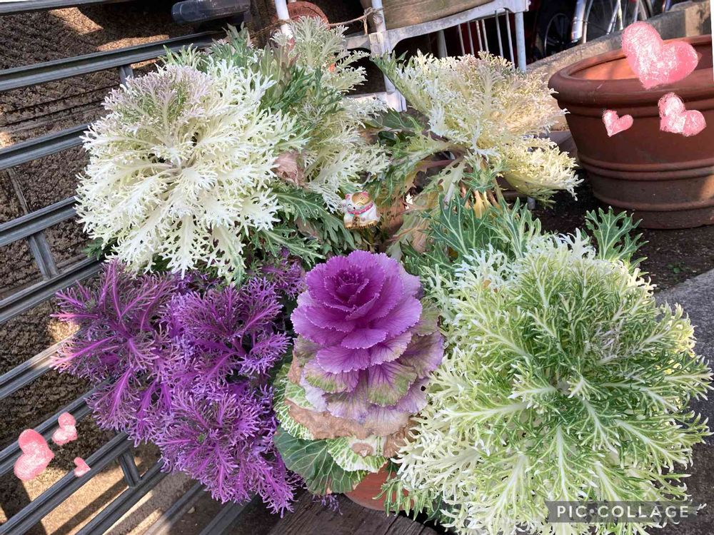 レースフラワーのようなステキな容姿 葉牡丹💜健在ですね〜🎶