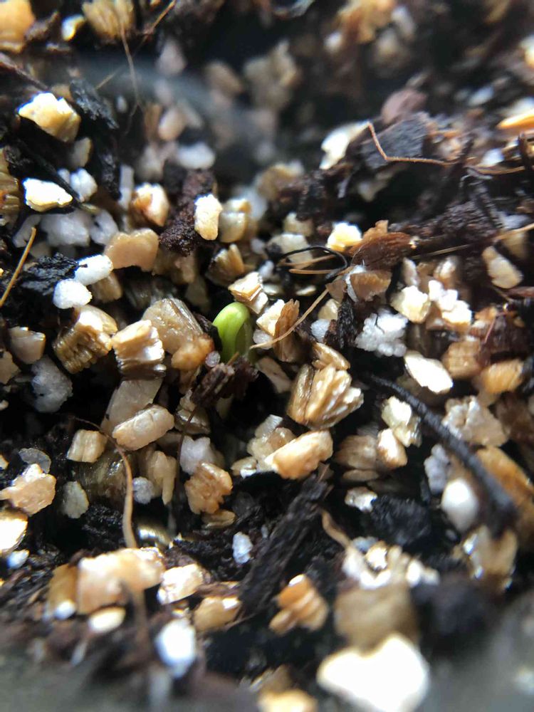 先日植えたフタマタマオウ(Ephedra distachya) の芽が出てきました♪