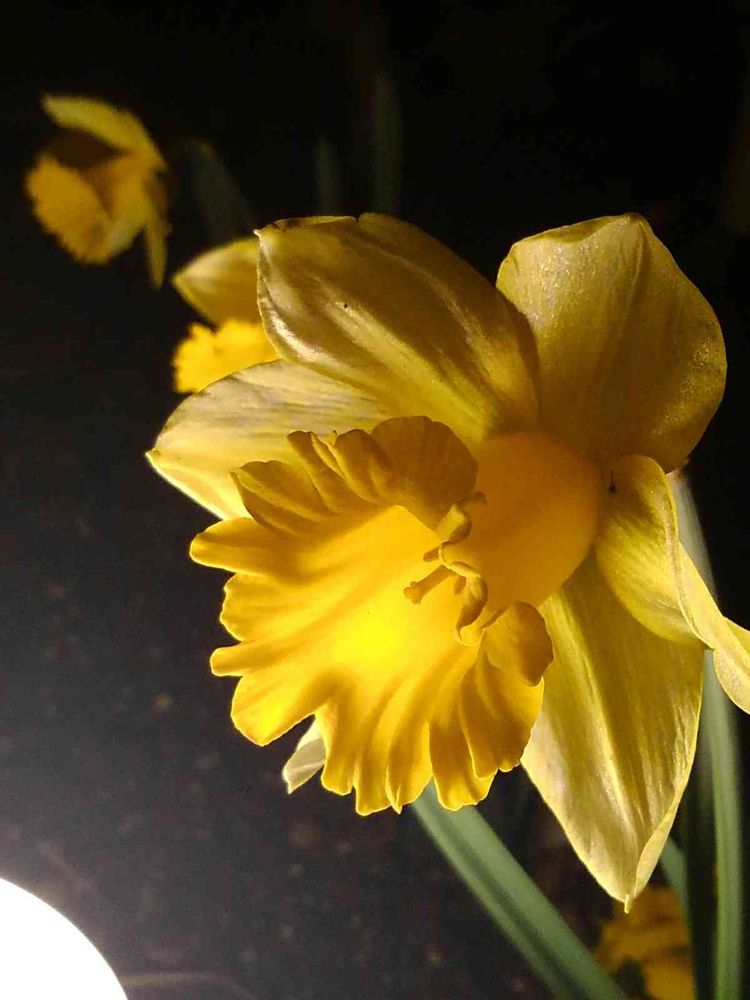 水仙は早春のイメージがありましたが、照明にあたると全然違って、一瞬カトレアかと思ってしまいました。