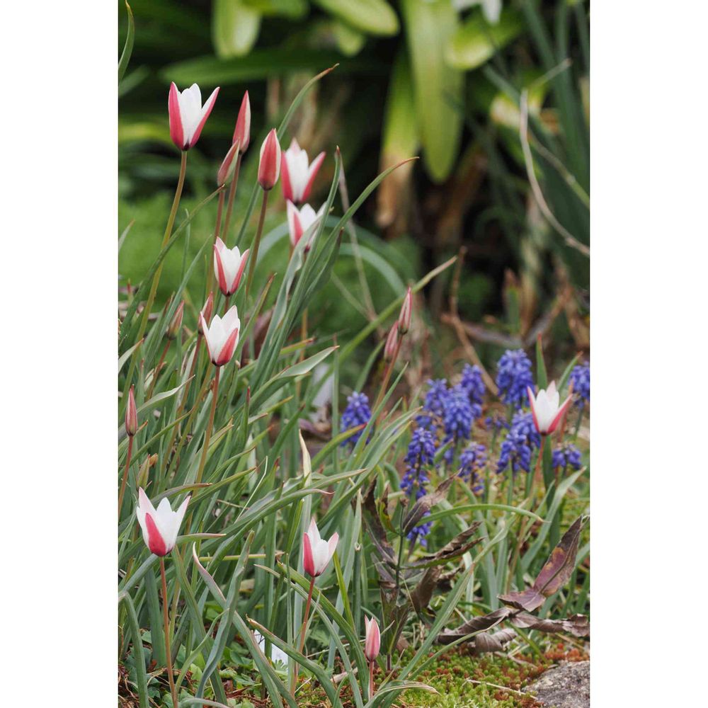管理棟の横に植えてあった原種系のチューリップ(クルシアナ レディージェーンかな?!)とムスカリの植栽ですが、如何にも春らしい組合せだな~