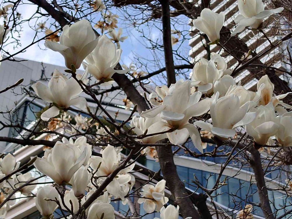 今日のお花、白木蓮。数日前の撮影です。真っ白な花が沢山咲いていました。