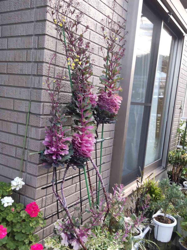 葉牡丹折れちゃうかと思いましたが、姑息な固定でどうにかしのげました💦