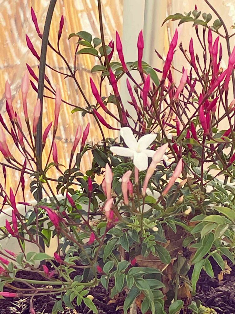 2022ー3ー27(日)晴れ☀️ ハゴロモジャスミン😳😃🎶咲きました‼︎ひとつだけ〜 可愛い💕 よーちゃんさん お大事にしてください👋