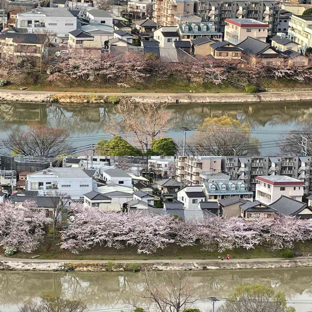 高台のマンションのベランダからの眺める桜並木最高ですね~。