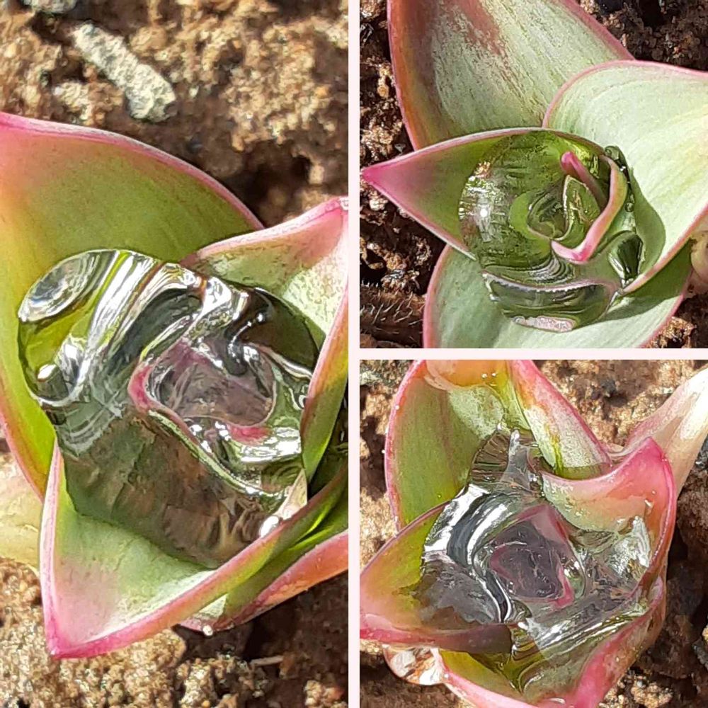 あまりにも雨水が朝日に照らされて綺麗だったので写しました📱