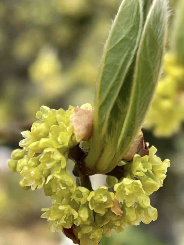 1月初め小さな固い蕾に出会ってから,まだかまだかと何度も足を運び待ち続けていましたが,一昨日やっと開花したクロモジに出会えました。💖