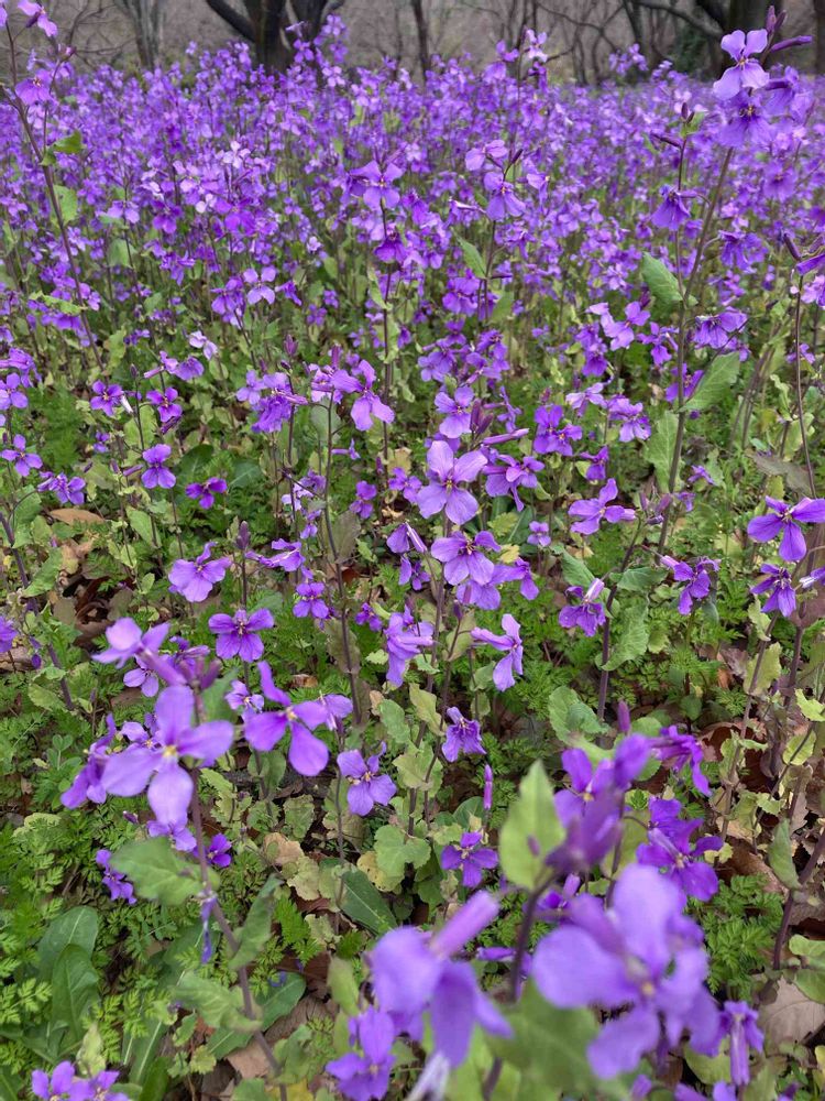 さすがにフルネームではどうかと思い、地名からいただきました💕西中学校の裏庭もハナダイコンでうすむらさきになっています💜💕