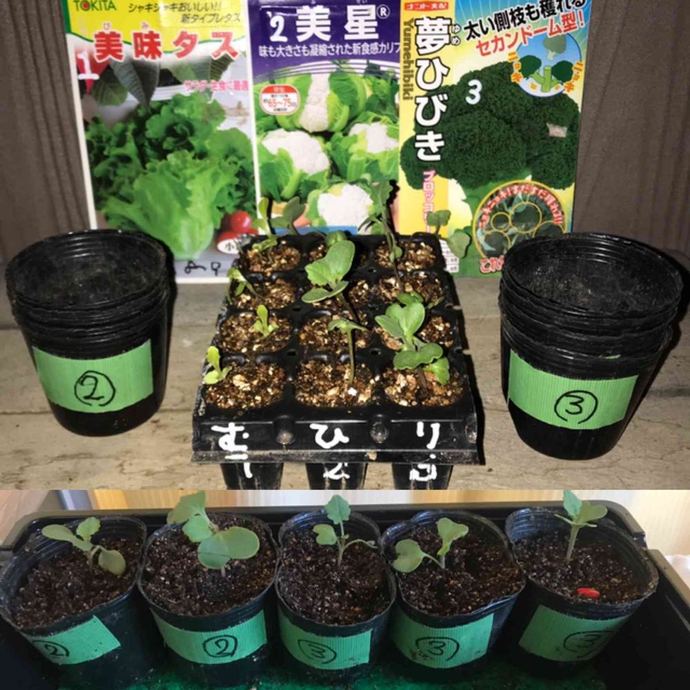 ②③ブロッコリー🥦カリフラワー、色違いみたいな感じだから生育もほぼ一緒な感じで🪴