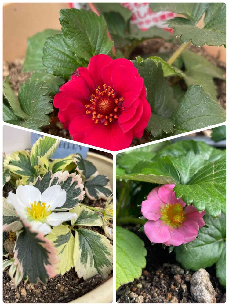 イチゴのお花が3色揃い組ですネ♥💗🤍