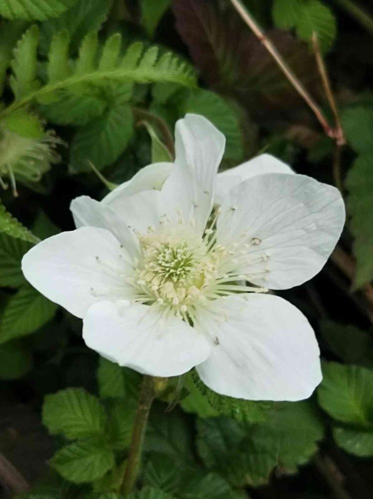 庭の片隅にたくさん咲いています。可憐な姿に似合わず、全身に細かい棘があり、近づく時は要注意です!花後の赤い実が可愛いくて美味しいです🍀