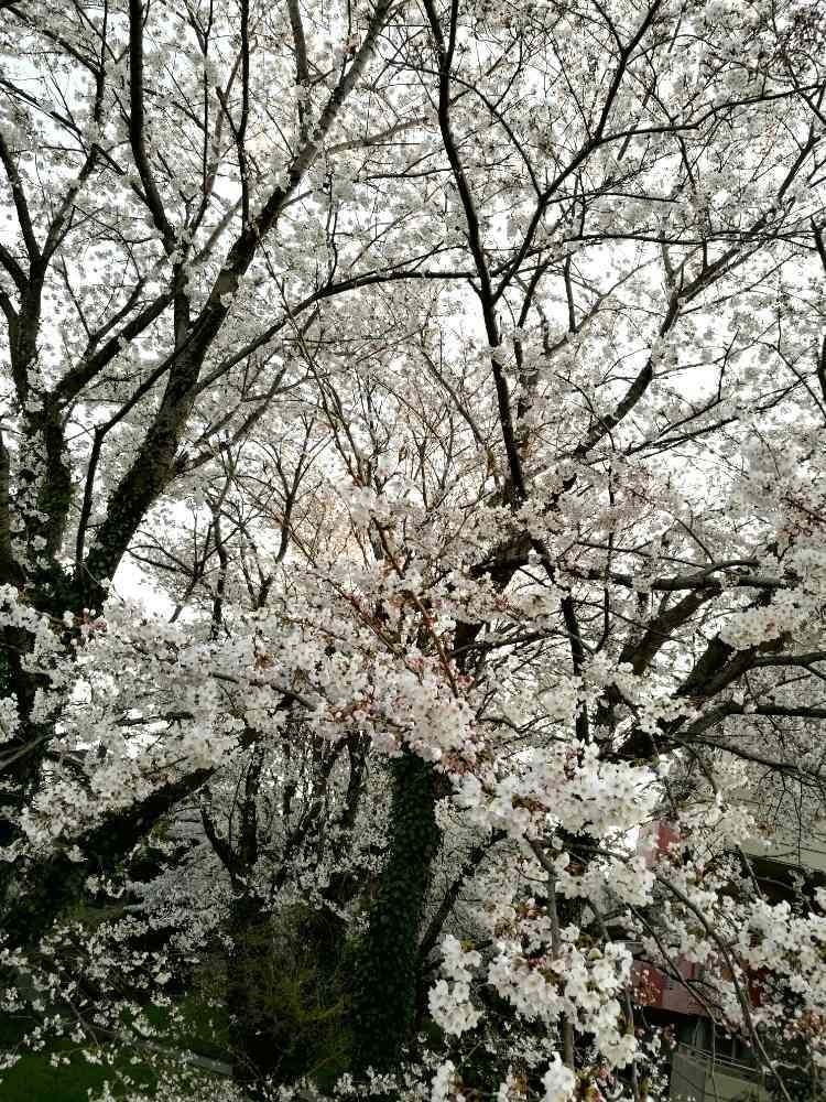 こちらの桜は手入れされてないかも。3階建ての建物より大きいかもしれません。ある意味危険な植物ですが窓からの眺めは素敵でした😆