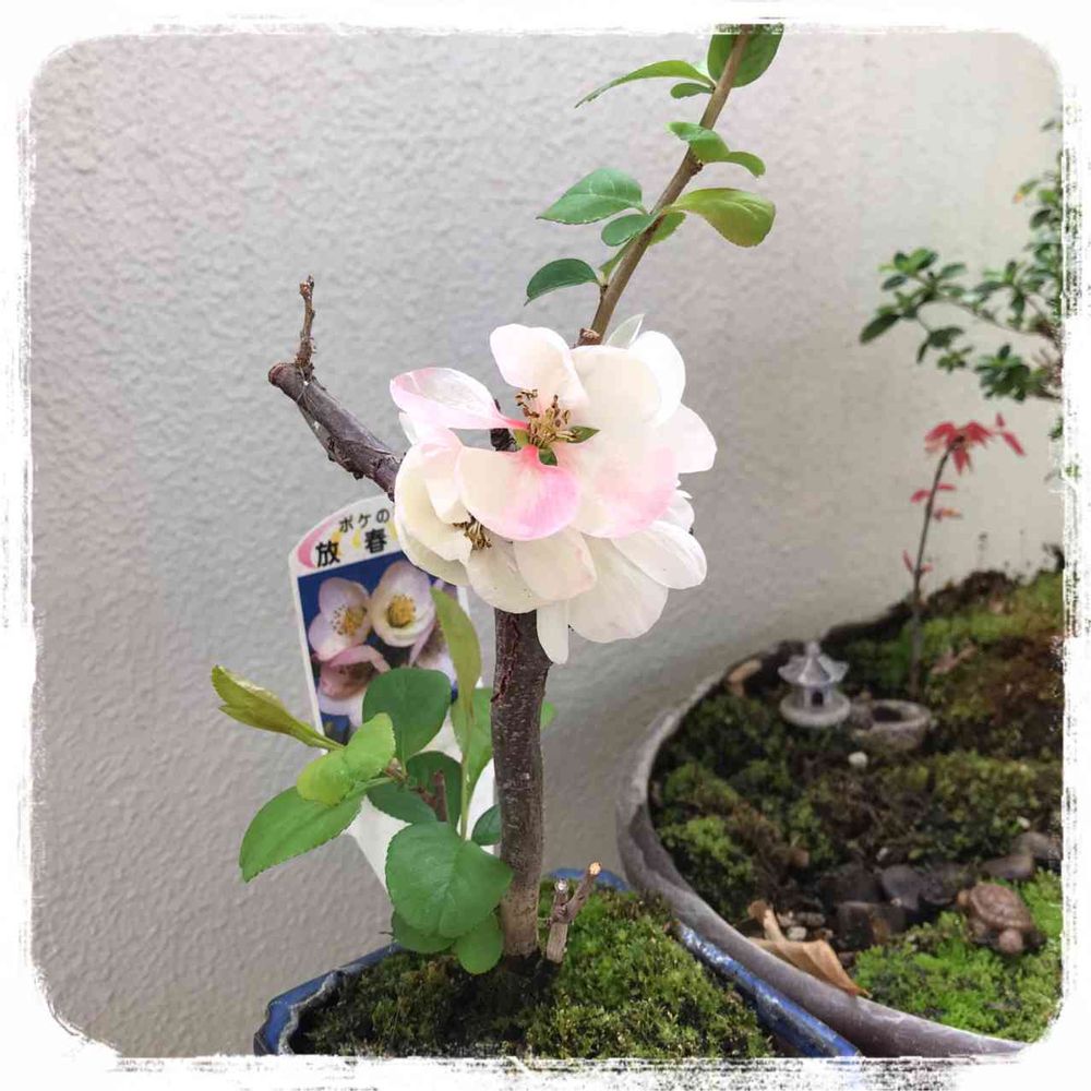 盆栽の剪定の仕方もわからないまま、カットしたので、枯れてしまったと思っていたボケのお花が咲きました💓