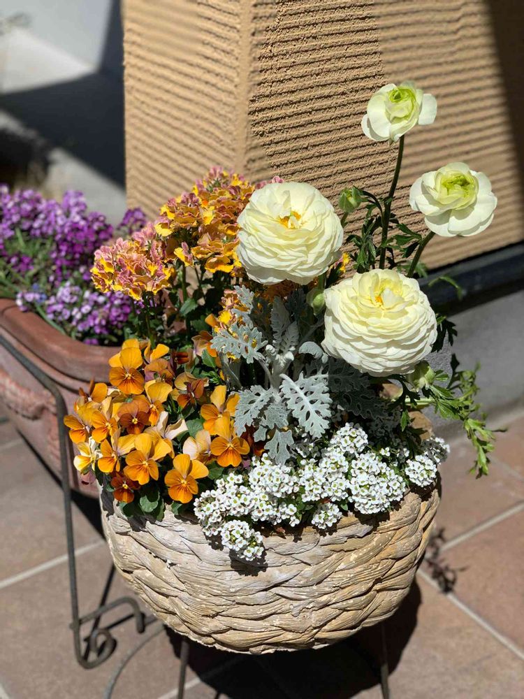 一ヶ月前に作った、ラナンキュラスとネメシアの寄せ植え😌