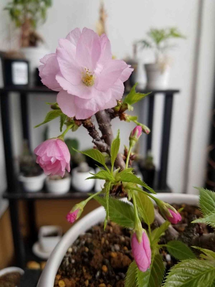 ウチは一輪でも咲いたら開花宣言ですっ!!2年目の一才桜が今年も咲いてくれました。