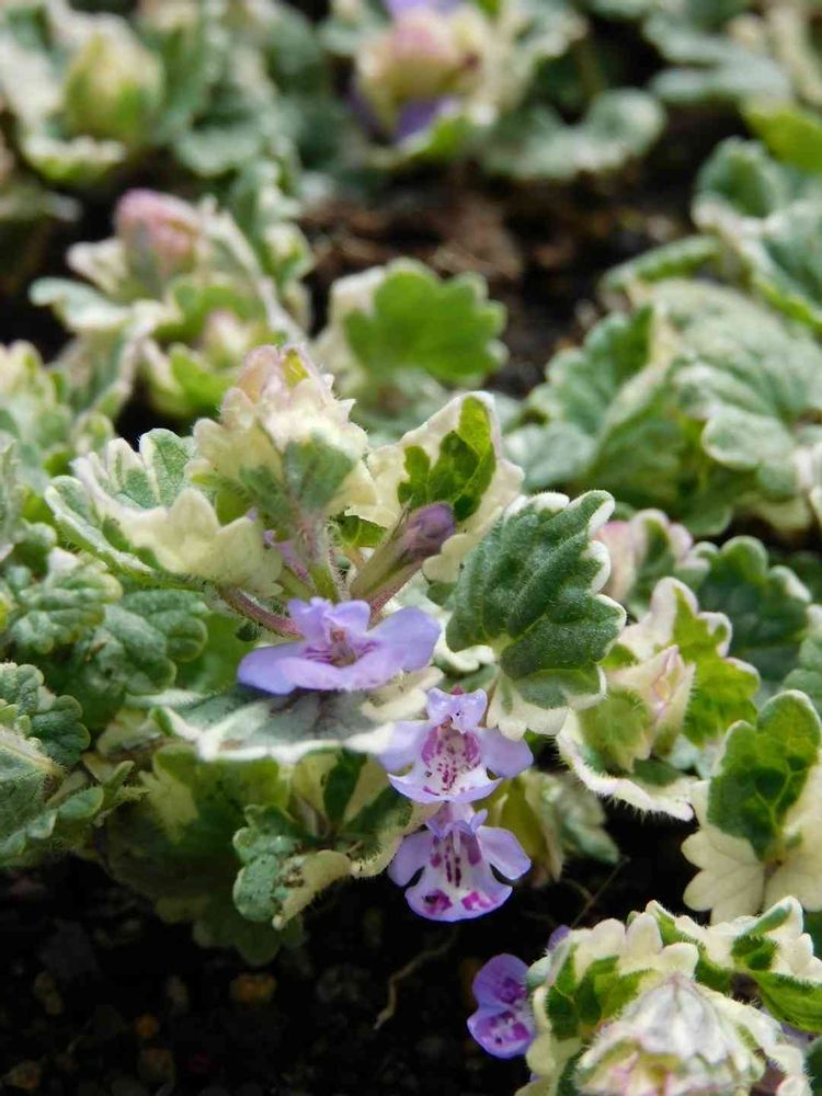 冬の間も綺麗な葉を保ち、春になると薄紫の小花がいっせいに開きます