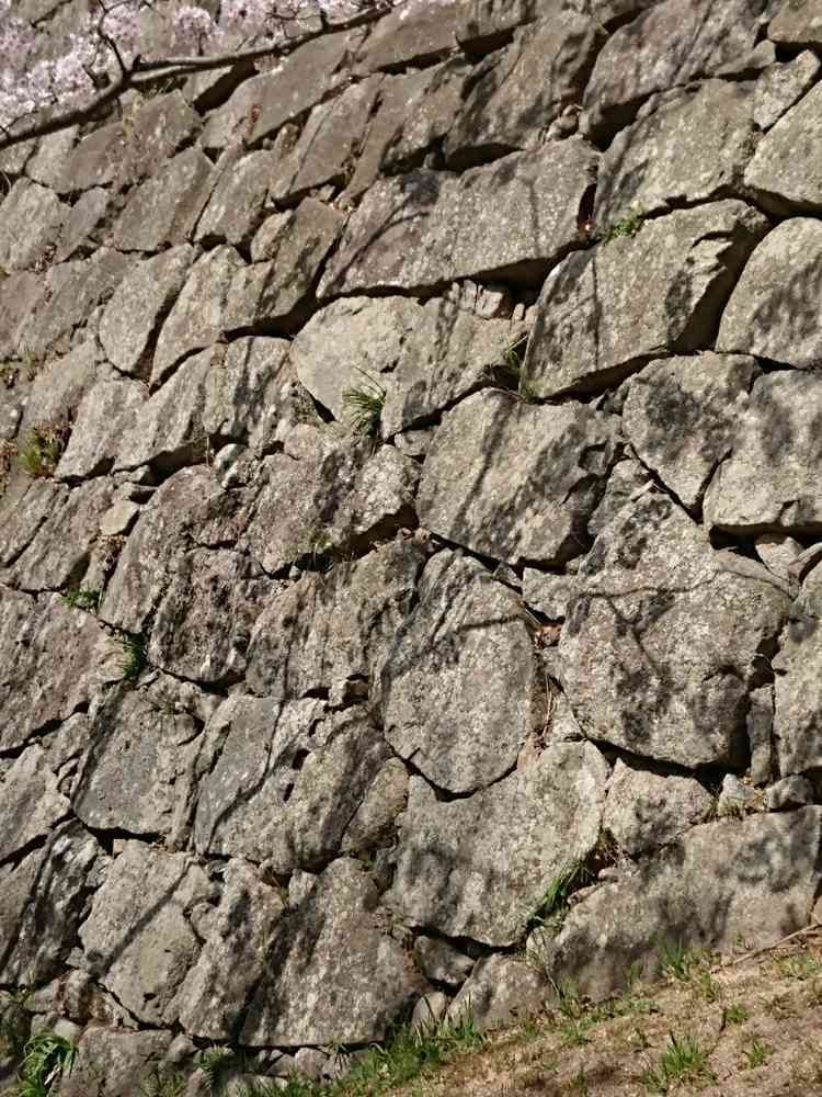 石垣にサクラの影👍