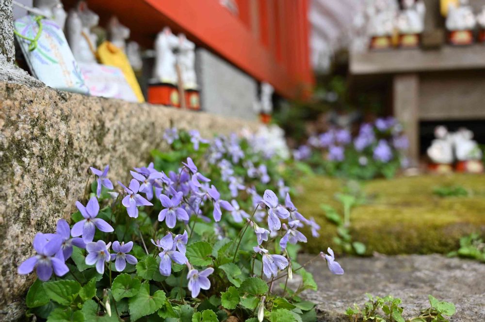 スミレと可愛いお稲荷さん達に癒されます(´꒳`)ホッコリ