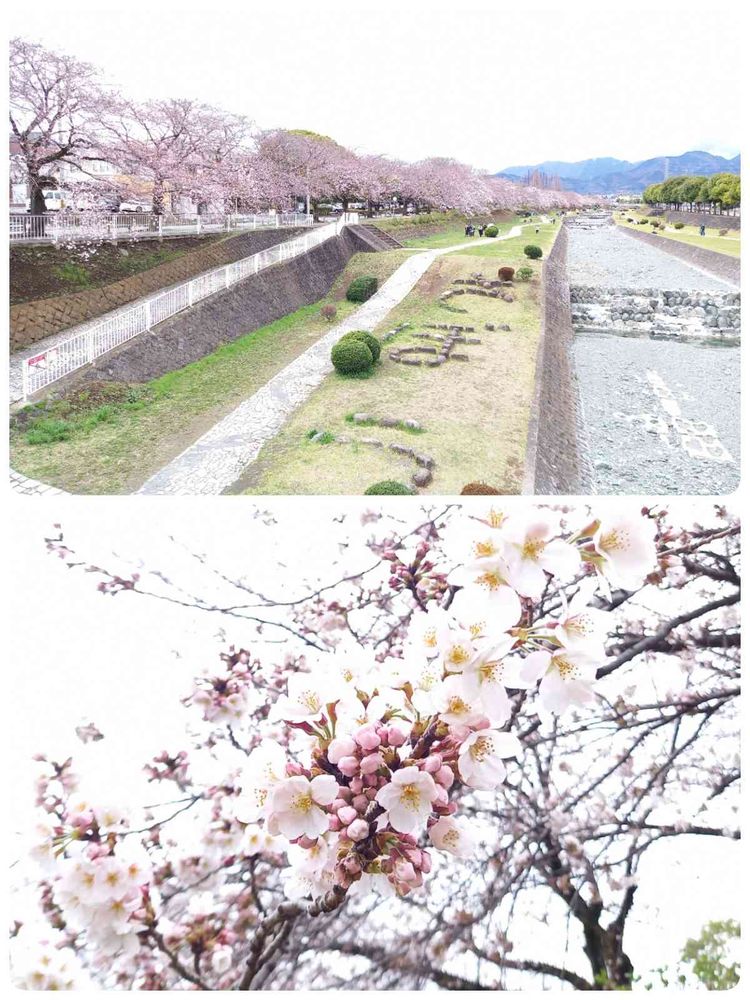 川沿いの桜並木、見事ですね🌸