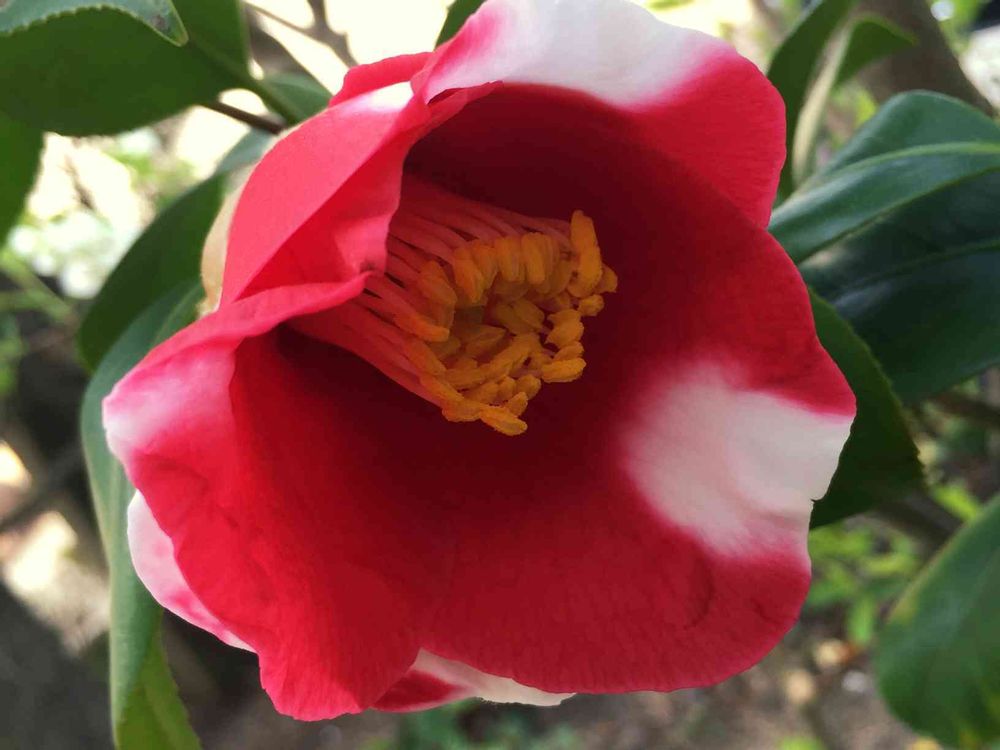 先日の、椿の隣のユーカリの木を半分切ったらお顔だした椿🌸(*ˊ˘ˋ*)。♪:*°