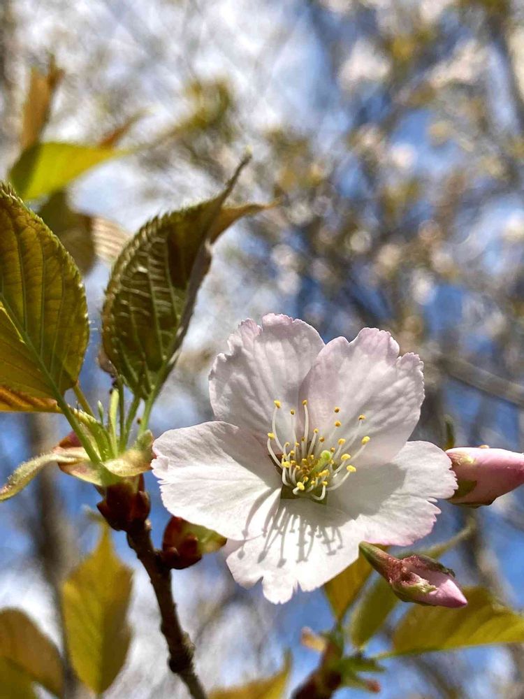 山桜は葉が先に出て、花が追いつく感じなんだよね〜