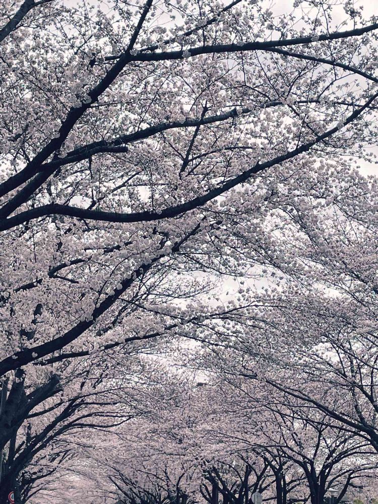 さん、青空だったならもっと素敵ですよー!味の素スタジアム通りなの。近くでもあちらこちらで桜のトンネルはありますが、こちらは穴場です😅👍