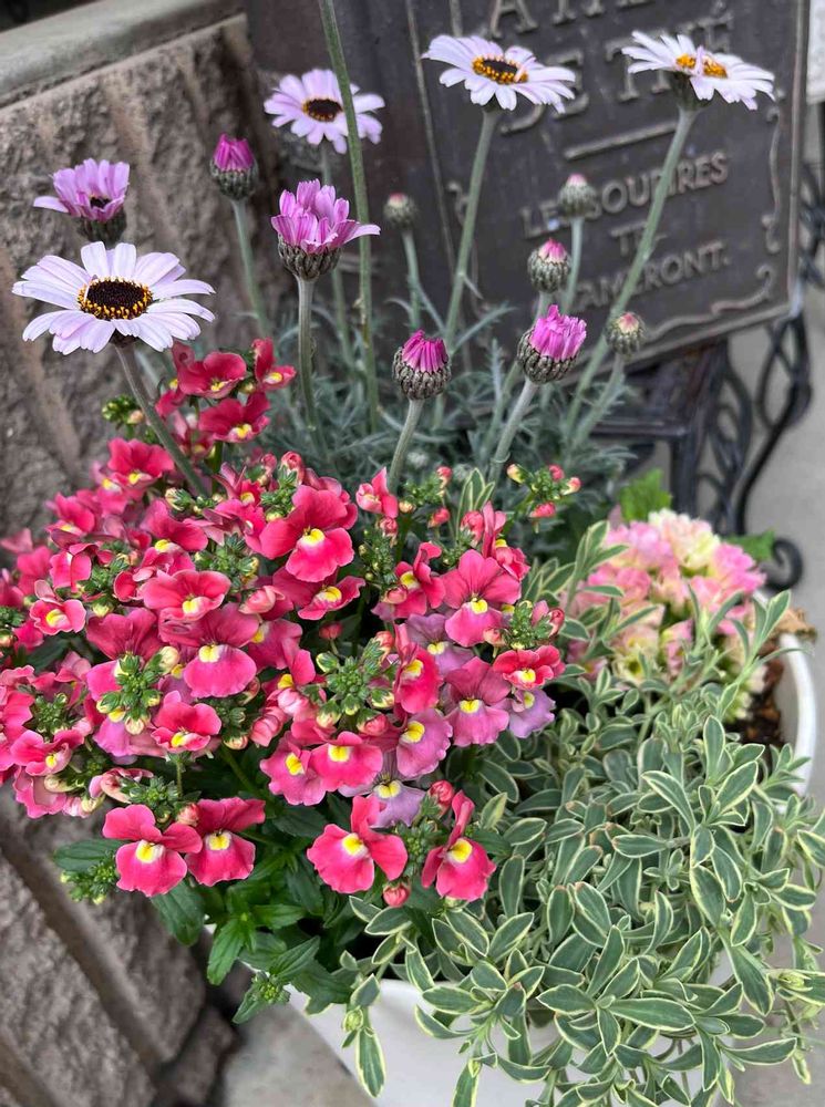 3/6に作ったローダンセマムとネメシア、プリムラ、シレネの寄せ植え💗