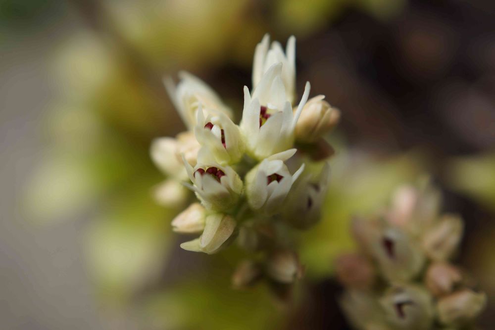 小葉丹頂草を軽石の鉢で育てています。満開2歩手前ですが、米粒のような蕾が開き始めています。