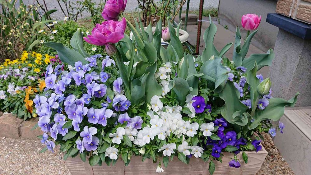 🌺プランター植えのビオラとチューリップ、ビオラがとっても元気です。