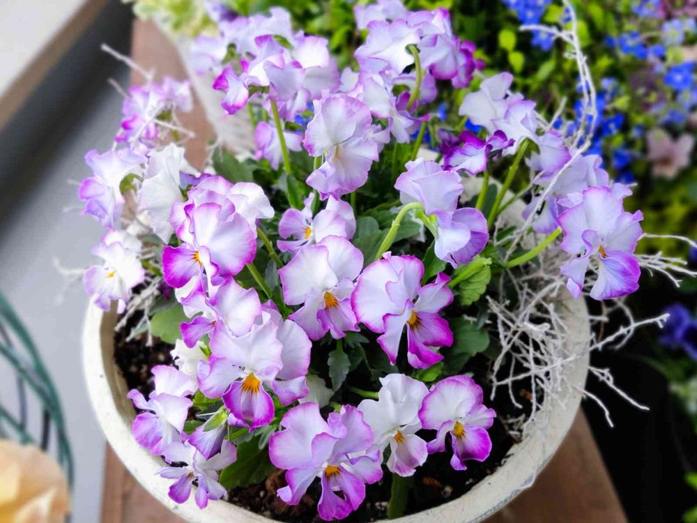 横浜セレクションマイファニープリンセスが満開です💙透き通った水色とピンクがかった紫が素敵✨冬の間イマイチ育ちが悪くてお花も2、3輪ずつしか咲いていなかったけど、やっと本気を出してきました😆