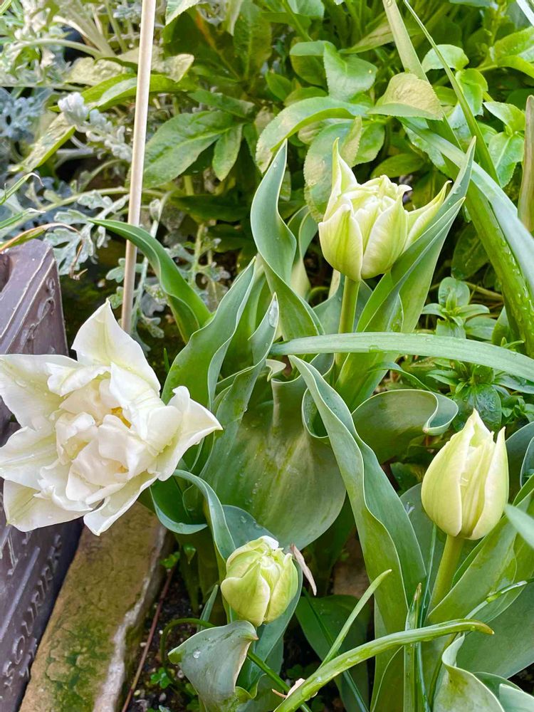 秋植えの白いチューリップ🌷が咲きました👏