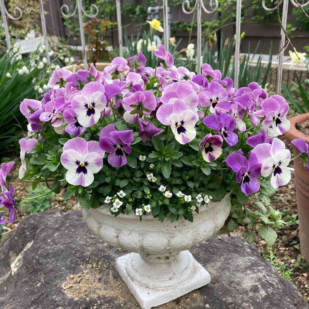 少し前に投稿した、パラソル型の鉢のビオラたち、額縁型の鉢の左側のビオラも66円でした🤗