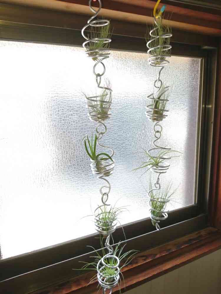 風通しを良くしてあげないといけないらしいと知って、我が家で一番風通しの良い窓の側にどうやって置くか作戦練ってワイヤーで吊るす事にしたの。