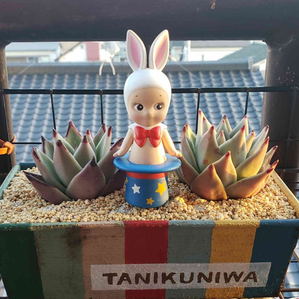 カラフルなプランターにかわいい多肉ちゃんとソニエンくん…
