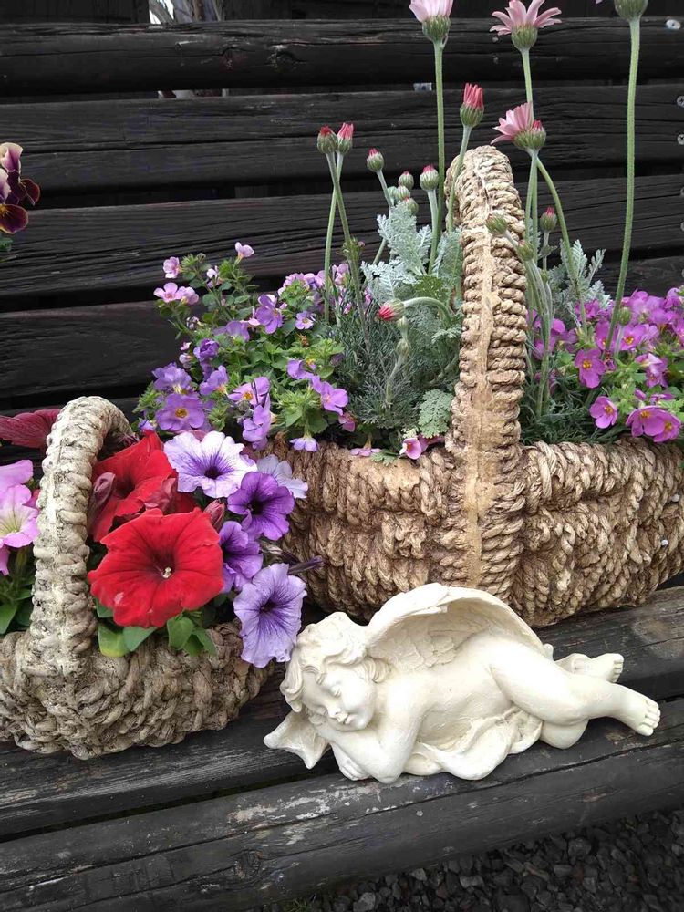 バスケットにかわいいお花ちゃん めっちゃかわいい〜バスケットはモルタルですか?
