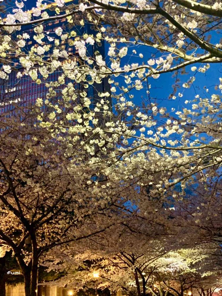 ビルの谷間に咲く桜は、なんと言っても夜桜が素晴らしい💕