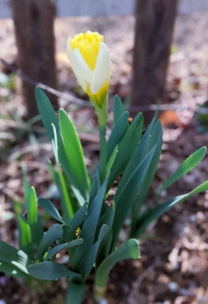 前投稿の咲いていたラッパ水仙のお隣り こちらは蕾が解けて来ている所です