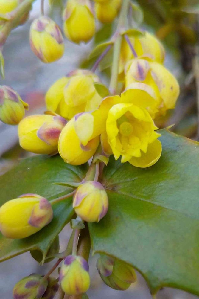我家の庭で。「ヒイラギナンテン」が 口を開けていました😉