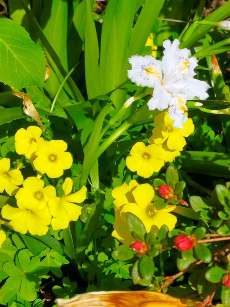 黄色いオキザリスとシャガが仲良く咲いていました🥰