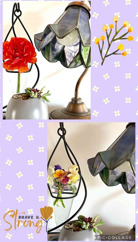 アンティークなランプと、お花と多肉ちゃんのコラボが可愛いくて、素敵ですねぇ♥