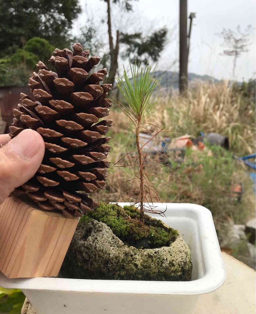 デッカい松ぼっくりのタネからようやくコレくらいまでに!