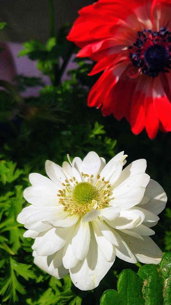 アネモネの紅白。
