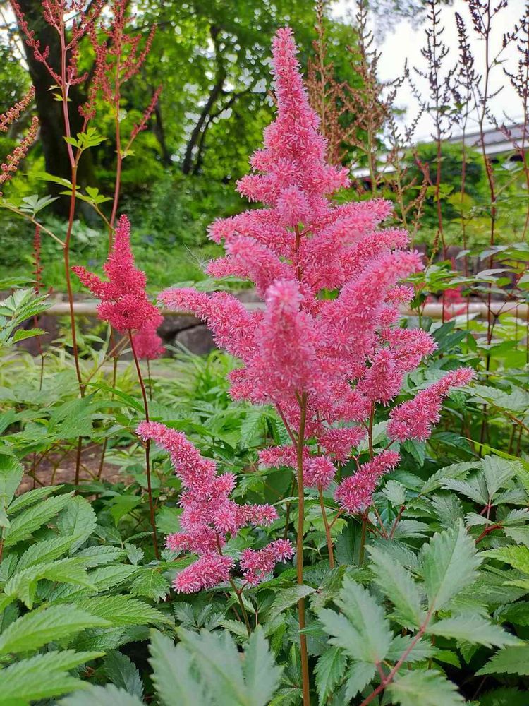 アスチルベという洋風な名前だけど、日本庭園にあって、新緑の濃い緑の中に、赤が映えて素敵な空間を演出していました🥰