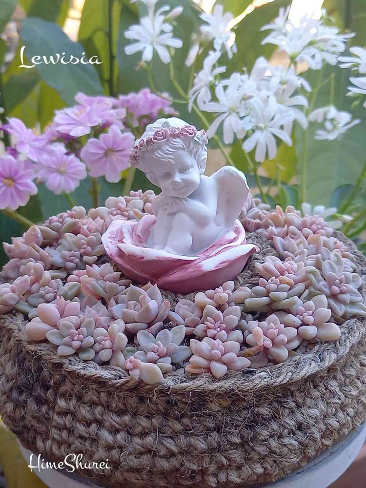 お花のケーキ🍰にエンジェルが乗っかって居るみたいでかわゆいです🥰🥰