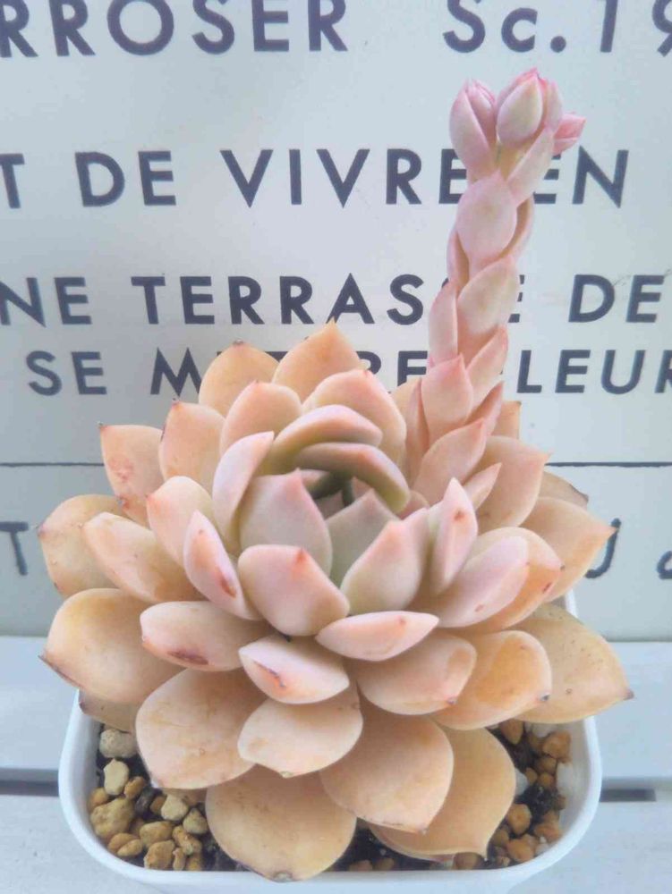 他の多肉たちはひょろ〜とした花芽を伸ばしているので、この子の花芽を見て思わず笑っちゃいました😄