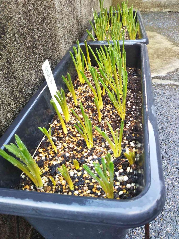 危ない😠あぶない🙇「ムスカリ」伸びてました🙏昨年秋に植え替え、ニュー小型プラ鉢三列に衣替え、今まで暗い庇の所に置いてました。駐車場に移動して水やりしました。「ハイ」巡回徘徊サボってました😰